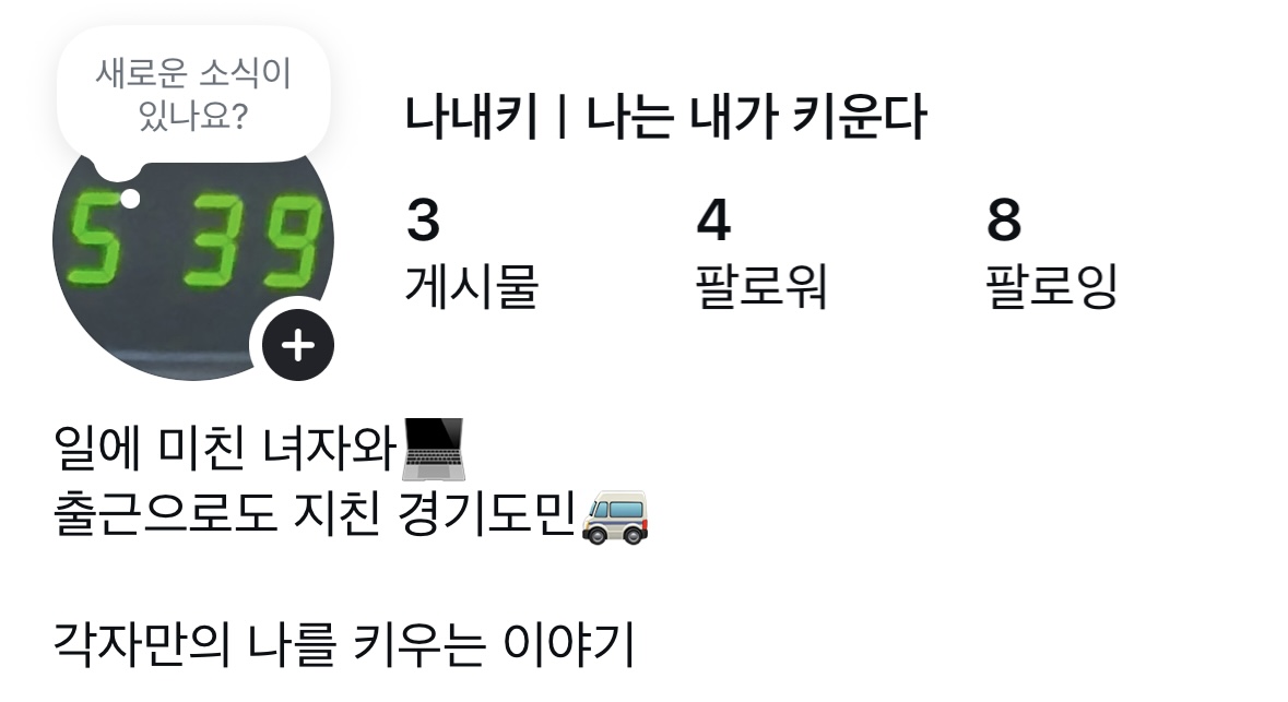 | | | 나부터 잘 키우자! 나는 내가 키운다는 뉴스레터를 시작했는데 말이야.
